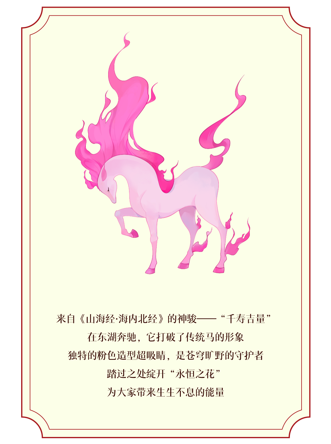 六匹骏马形象设计溯源自唐太宗的盛唐六骏。在传承历史原型的基础上,注入现代审美及人设构思,生动塑造六匹形神兼备、各具风姿的骏马。