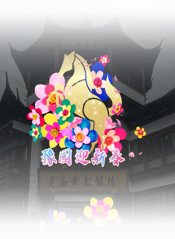 抬头望去,神骏“吉量”正在晏海阁上踏光而行!它昂首嘶鸣,四蹄生风,矫健的身姿在飞檐斗拱间腾跃;所过之处花瓣飞舞,像一幅流动的《百花卷》徐徐展开。“豫园迎新春”的主题标语,悄然浮现于花瓣之上,上古神话的神秘与新春佳节的热闹,新春的祥瑞与诗意,在晏海阁上生动呈现。