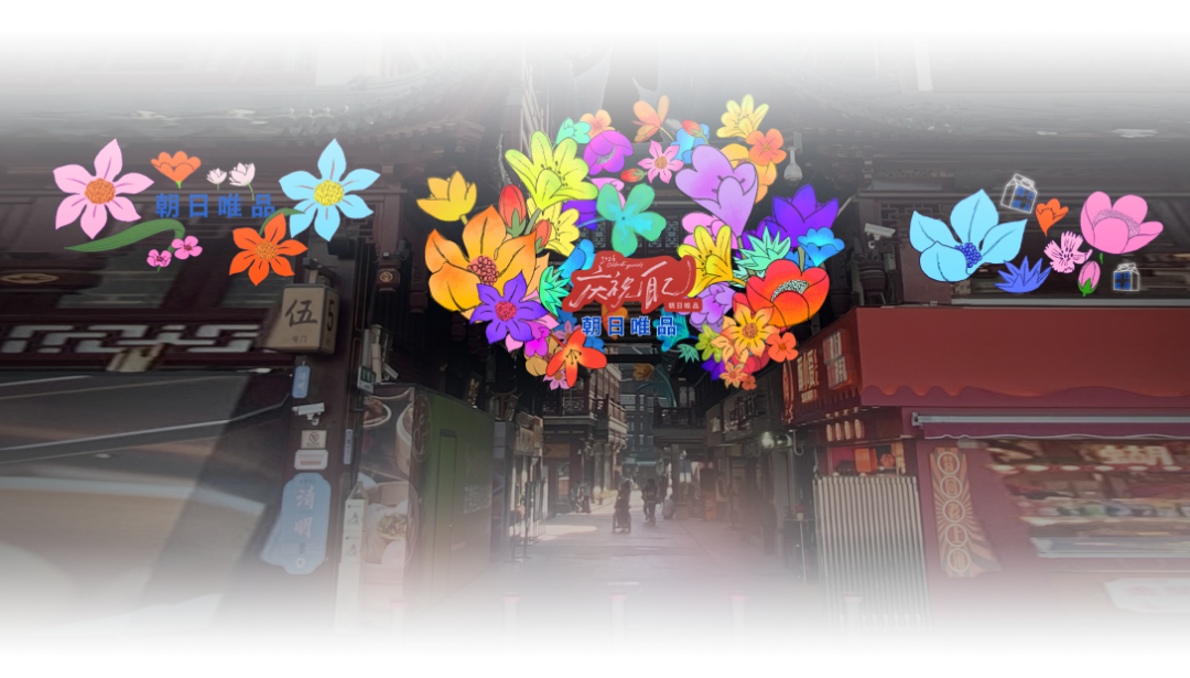 豫园商城5号门的门头与通道在缤纷盛放的花朵装点下,层叠的花形与流动的色彩,犹如从旷野中自然蔓延般铺展开来,明亮、浪漫、富有时尚感。既呼应了“旷野生花”的主题,也寓意着“梦想如花般缤纷盛放”,传递了对大家的新年期许:穿过5号门,开启属于自己的花开旅程,心中所愿皆能绽开。