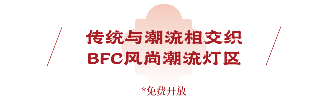BFC风尚潮流灯区从2026年2月1日起焕彩开场,打造既熟悉又充满新意的潮流中国年,解锁融汇传统年味与当代风尚潮流的奇幻打卡地。