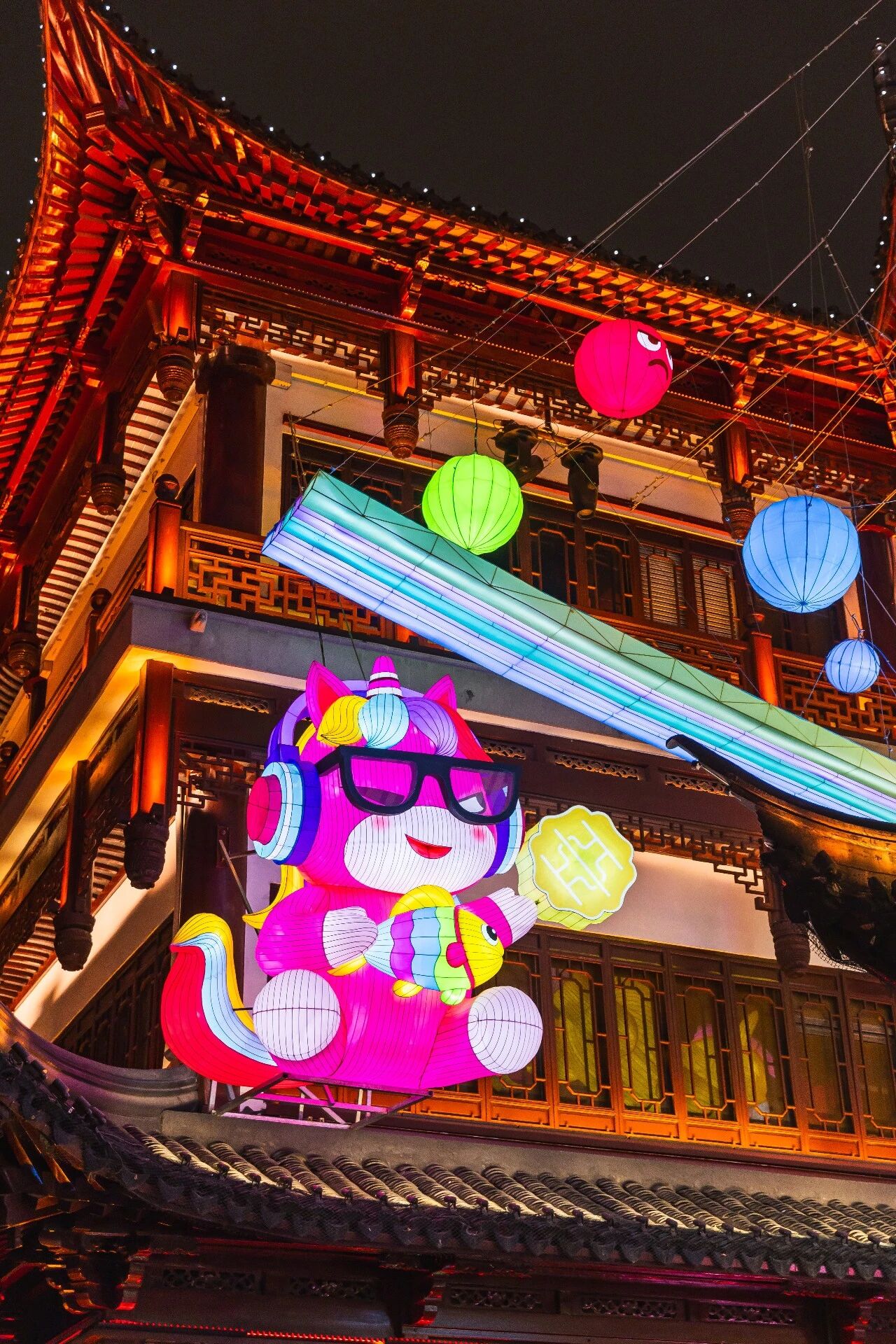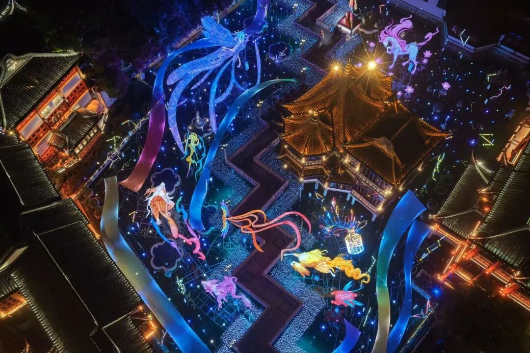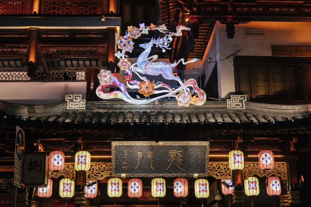 文昌街上,敦煌九色鹿与宝相花纹翩然而至,将敦煌 “多元文明交汇” 的底蕴与上海 “海纳百川” 的气质相融,让两座城市的文化基因在灯影里碰撞交融,每一盏灯都藏着吉祥如意的美好寓意;