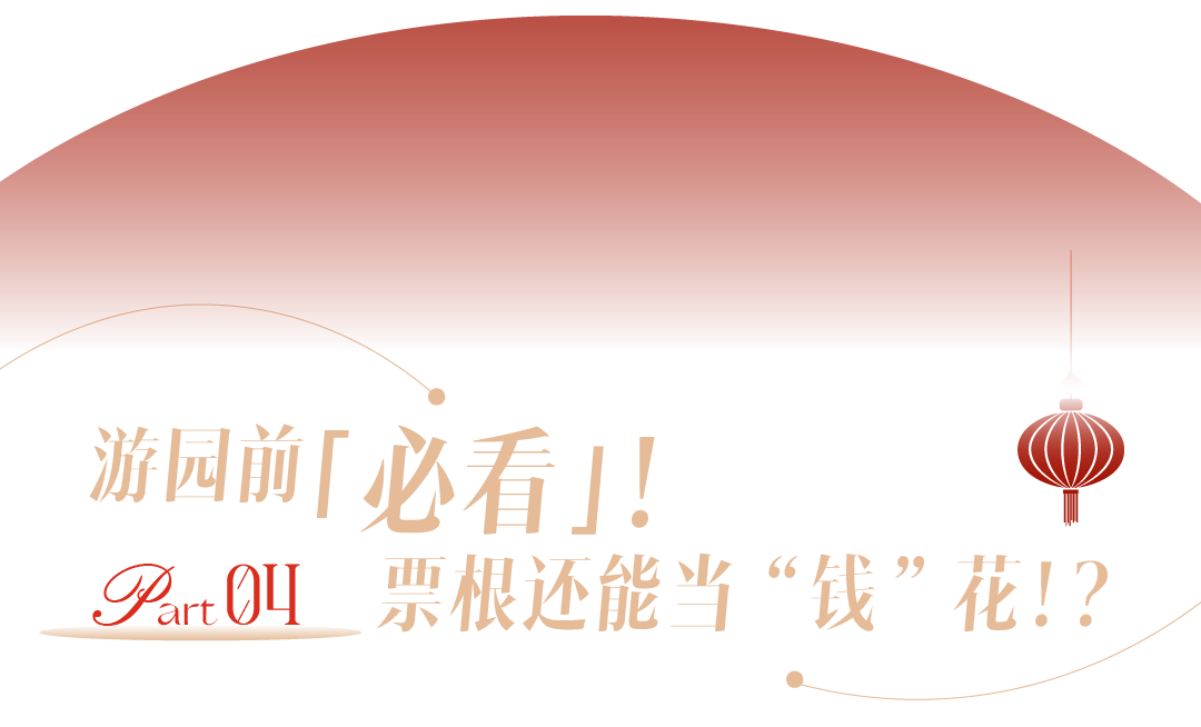 80元门票就能畅享价值约 600元的8大惊喜权益,60元的BFC外滩金融中心4小时免费停车,让赏灯停车不再难。累计100元超值买黄金券让春节买黄金薅羊毛最划算,上海城隍庙定制福牌福气送到手,吃喝玩乐吃饭享尽30余家店铺优惠,赏灯停车吃饭购物接福回家。一票让你体验“豫园·BFC·外滩”最地道最浓郁上海年味路线。 票根当 “钱” 花,让游园体验更超值、更省心!