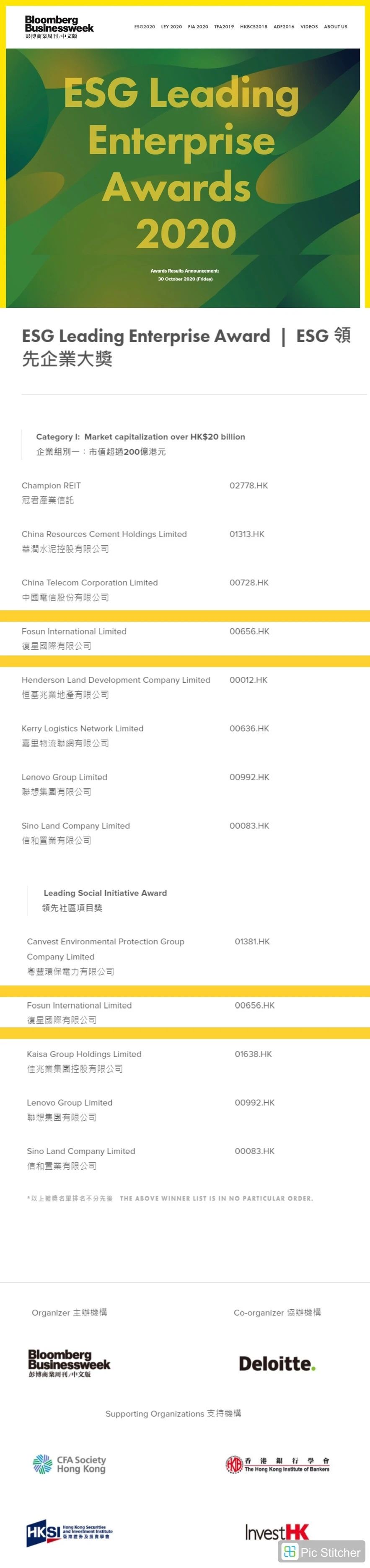 国际收到《彭博商业周刊中文版》的通知,荣获该杂志主办、全球最大会计师事务所之一的德勤协办的“ESG 领先企业大奖-市值200亿港元以上”及“ESG 领先项目奖”。
