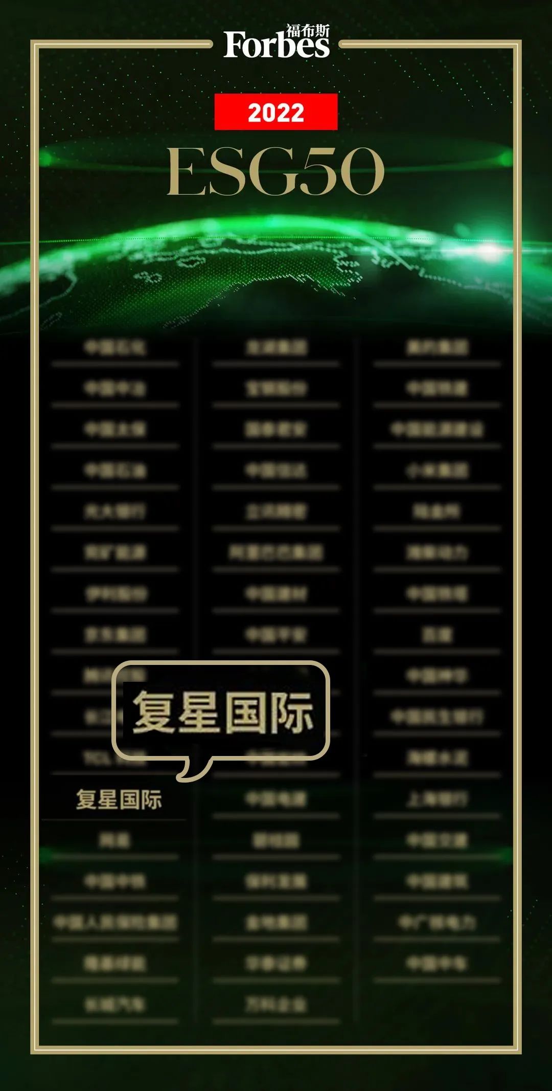 以下为福布斯中国2022“中国ESG 50”完整名单(排名不分先后):