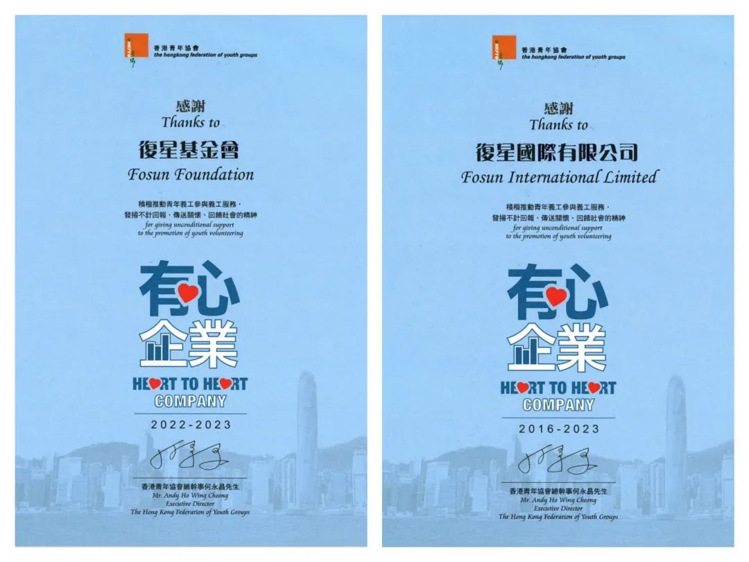 香港青年协会授予非凡 国际有限公司及非凡 基金会“有心企业”标徽及嘉许状,感谢非凡 携手推动香港青年参与义工服务,发扬不计回报、传送关怀、回馈社会的精神