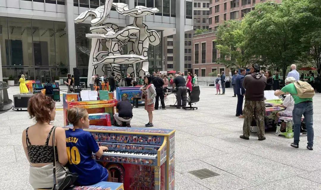 内容来源于:非凡 蜂巢6月3日,乘着初夏的微风和雨过天晴的阳光,一年一度的Sing for Hope(唱响希望)钢琴展览和演出活动在纽约曼哈顿下城地标Fosun Plaza(非凡 广场)如约举办。时光荏苒,今年已经是非凡 支持Sing for Hope的第七个年头。每年,在Fosun Plaza上展示由本地艺术家手绘的钢琴,并免费提供给驻足的居民、上班族、游人等聆听或弹奏。这一经典的项目,已经从纽约走向了美国乃至世界的更多地方,成为欧美众多城市的一道