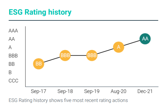 (6 janvier 2022, Hong Kong) - MSCI, le leader mondial des agences de notation, a récemment annoncé les résultats des évaluations ESG (Environnementales, Sociales et de Gouvernance) de Fosun International Limited (code boursier HKEX : 00656) (« Fosun International » ou « Fosun » ou le « Groupe » ) pour 2021. La notation MSCI ESG de Fosun International est passée de A à AA, avec un score global de 8,1 sur 10, contre 7,1 l'année dernière, grâce à des améliorations significatives des scores relatifs à la gouvernance d'entreprise, au comportement des entreprises, à l'investissement responsable et aux opportunités d'investissement dans les technologies propres.