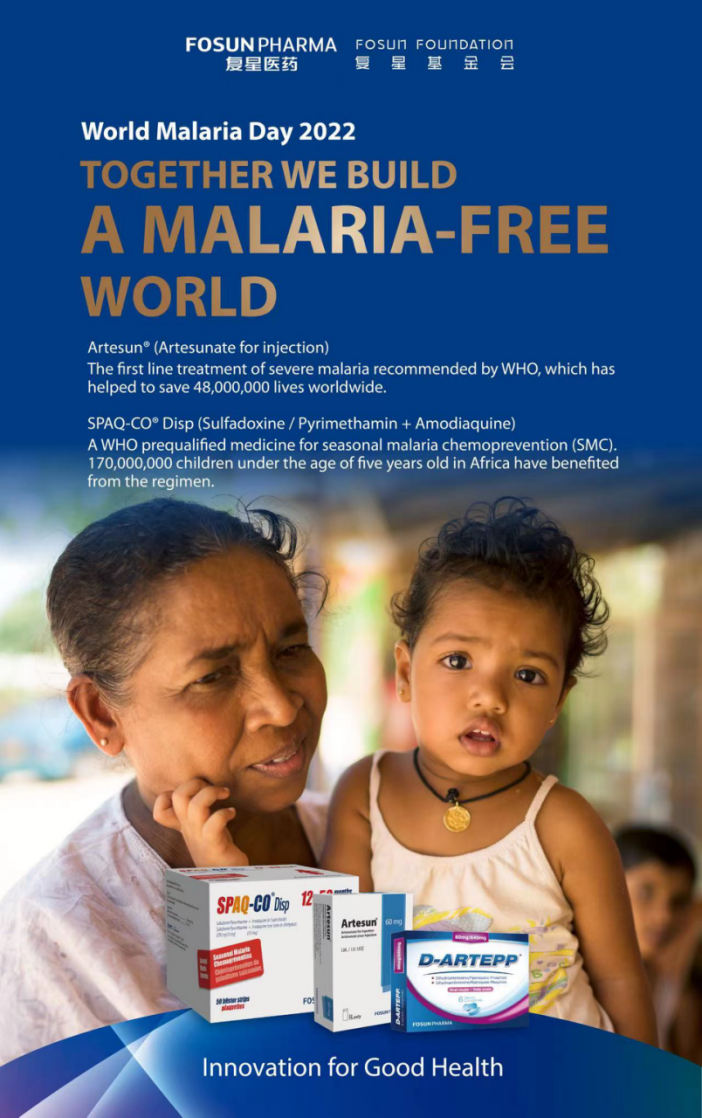 マラリア対策は、中国によるアフリカへの医療・保健衛生支援において、常に最優先事項となっている。2006年以降、復星医薬は中国政府がアフリカで展開するマラリア対策プロジェクトに積極的に参加し、現地のマラリア対策能力を向上させるために、さまざまな公益福祉活動や国際研究協力を実施してきた。 長年にわたり、グローバルファンド(世界基金)、ユニセフ、WHO、アフリカの国家医薬品調達センターへ抗マラリア薬を供給する中心的な存在となっている。
