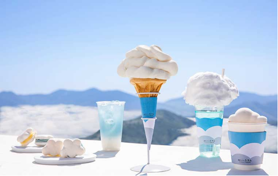 雲海テラスに屋内カフェ「雲Cafe」が登場します。ここでは、ふわふわな雲を表現した新しいスイーツ「雲ソフト」や、「雲マカロン」などを提供します。雲形のマシュマロを添えた「雲海コーヒー」や、雲のような綿あめがのった「雲海ソーダ」など従来のメニューもあります。また、雲海は穏やかな風に乗ってゆっくりと流れ、刻一刻と表情を変えていきます。二度と同じ表情を見せることのない雲海との出合いは一期一会です。雲をテーマにしたドリンクやスイーツを堪能しながら、景色を眺めたり、屋内のソファでくつろいだり、雲海を待つ時間も楽しく過ごせます。気長に待てば、雲海に出合える可能性が高くなります。